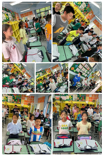 本周一,班主任老师对同学们进行了培训,指导学生如何整理得井井有条,既干净整洁又省时有效。比赛时,学校根据不同年段学生的年龄特点和劳动能力,分成了两个板块活动,1-3年级为“整理书包”比赛,4-6年级则是 “叠衣服” 比赛。同学们按照比赛要求,以最快的速度做好整理,将书包、衣服等整理得有条理。