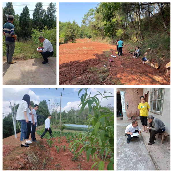 图为三星镇农服中心工作人员实地核查、调研各村(社)撂荒地情况