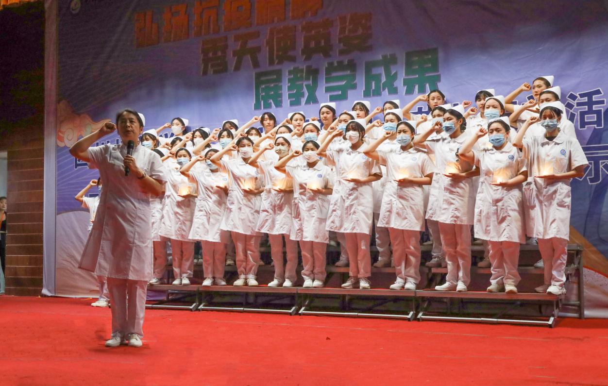 成都华西上锦南府医院护理部主任廖燕寄语同学们牢记南丁格尔神圣誓言,继承和发扬南丁格尔精神,提高专业技能,提升职业素养,为步入工作岗位,更好地服务患者、服务社会打下坚实的基础。