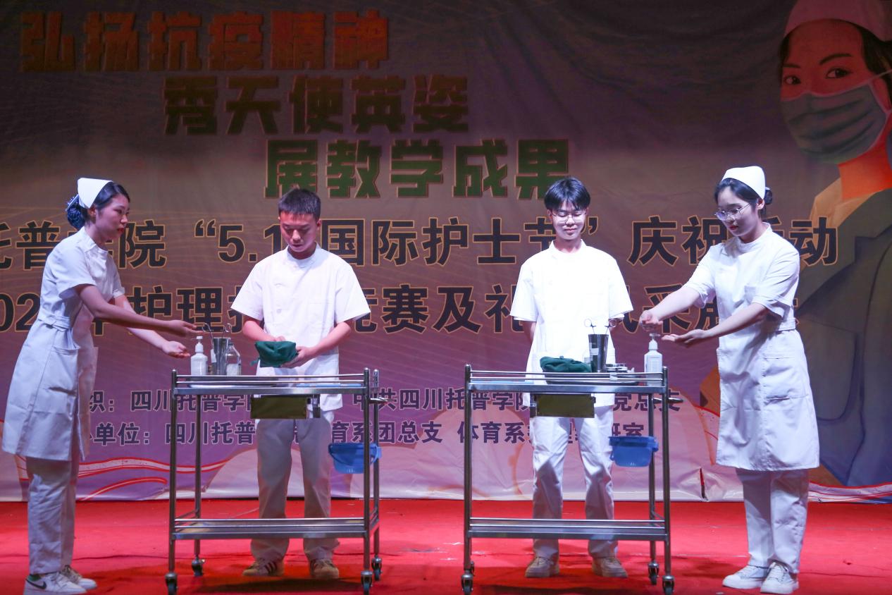 活动还开展了护理技能大赛。比赛共设护士礼仪表演、心肺复苏两个赛项。经过角逐,2020级护理4班、2020级护理7班获得一等奖;2021级护理PB1B班、2021级护理PB2B班、2021级护理PB3B班获得二等奖;2020级护理5班、2021级护理PB3A班、2021级护理PB2B班、2021级护理PB2A班获得三等奖。共8名同学获得心肺复苏技能大赛单人奖项。(张进春)