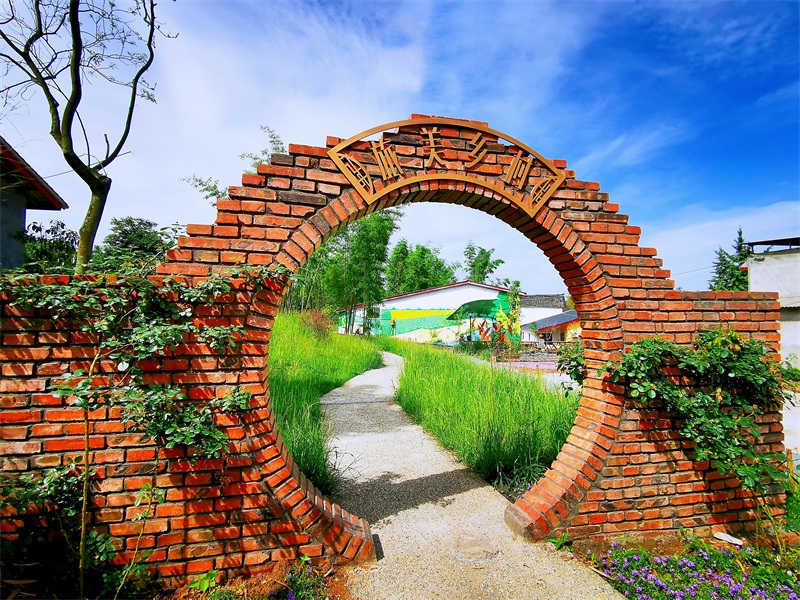 成都市金堂县官仓街道红旗村14组盘海柚里,位于官仓街道场镇至玉皇养生谷旅游环线旁,院落占地面积约35亩,均按照川西民居风貌进行统一设计,统筹划分八大功能区域,通过实施“山明水静”基础设施提升工程,对道路、林盘、边沟、墙面等进行提升打造,实施“农耕花境”“竹灯乡忆”微更新对院落10个小微节点进行打造,实施“诗意小筑”庭院美化大赛,以奖代补的形式鼓励群众对房前屋后进行美化,以花为媒、以水为介,实现“一步一景”“一镜一画”的空间有机更新。
