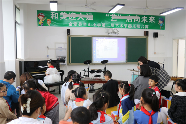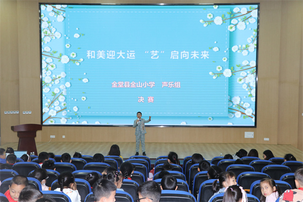 四川新闻网成都5月18日讯 为积极落实国家“双减”政策,进一步加强学校美育教育,培养学生的艺术修养和审美情趣,金堂县金山小学于2022年4月便拉开了第二届艺术节序幕。学校以“和美迎大运 ‘艺’启向未来”为主题,分阶段举行了艺术节系列活动。各班级经过班级赛推荐400余名位选手报名参加学校初赛。2022年5月7日,经过激烈比拼和实力角逐,最终有300余名选手入围学校艺术节各项目决赛。