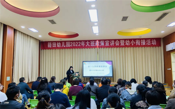 四川新闻网成都5月20日讯 为了及时、准确、全面宣传天府新区招生入学政策,让家长们更透彻地了解政策,保证大班幼儿顺利入学,天府新区籍田幼儿园于2022年5月18、19日下午分批错时入园,开展了2022年小一入学政策宣讲会暨幼小衔接活动,全体大班家长参加。