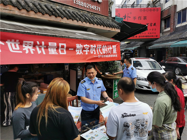 四川新闻网成都5月20日讯 2022年5月20日是第23个“世界计量日”,金牛区市场监管局围绕“数字时代的计量”活动主题,在大西南茶叶市场开展了“创诚信市场、做诚信商户”的计量日宣传活动。