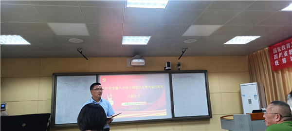 最后,由青白江区实验小学校长程辉发言。程校长认为党建工作是学校工作的重心,而从小树立远大理想,向着美好的未来奋斗的信念,也要从小根植于孩子们的心中。他表示学校将全力支持课题组的各项工作,并希望课题组的老师们开拓创新,能找到更好的实施途径,运用更好的研究方法和策略,让课题落地生根,茁壮成长,结出属于实小的特色果实。