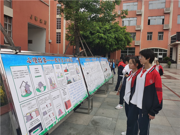开展心理健康知识宣传,结合中学生身心发展的规律和特点,紧贴学生的生活实际和心理需要,用心挑选《两个蛋蛋的爱情》、《两只兔子的友情》和《失落的一角》三个心理故事制作宣传展板,给中学生最关心的爱情、友情和自我成长的话题,带去不一样的认识和思考。