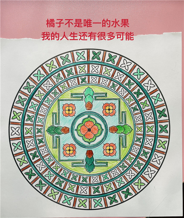 彩绘曼陀罗,著名心理学家荣格把曼陀罗绘画用于自我心理治疗中,发现个体在绘画曼陀罗的过程中可以减轻压力、疏导和转化不良情绪、可以集中注意力于当下、释放创造力……彩绘曼陀罗常能让人体验到一种深深的平静和愉悦。结合高三学生在最后的冲刺阶段呈现出的学习和身心方面的表现,选择彩绘曼陀罗的形式,帮助学生实现心底的安宁和稳定,以更好的状态迎战高考。