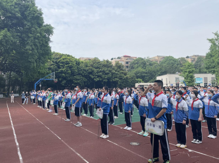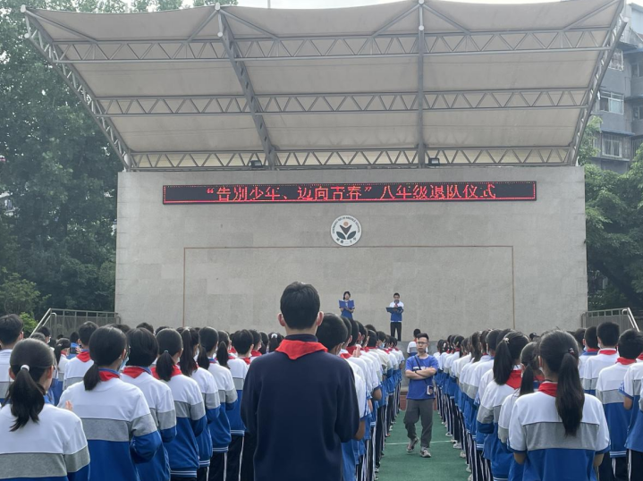 四川新闻网成都5月25日讯 5月23日,成都市第二十中学校举行了以“告别少年,迈向青春”为主题的少先队员退队仪式。本次活动由八年级一中队何昕桐和七年级七中队杨佳欣共同主持。
