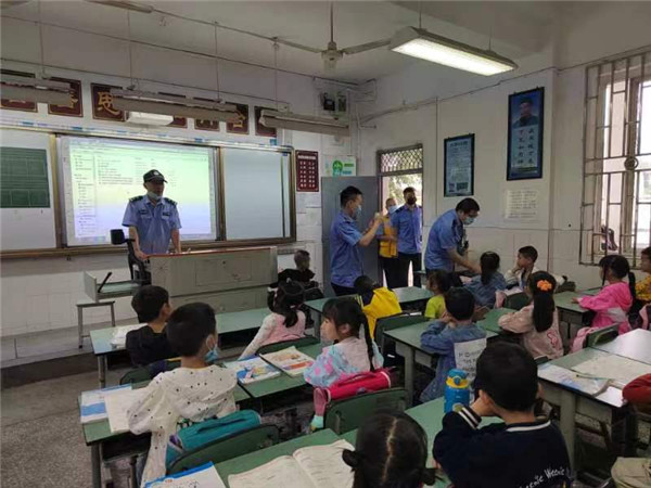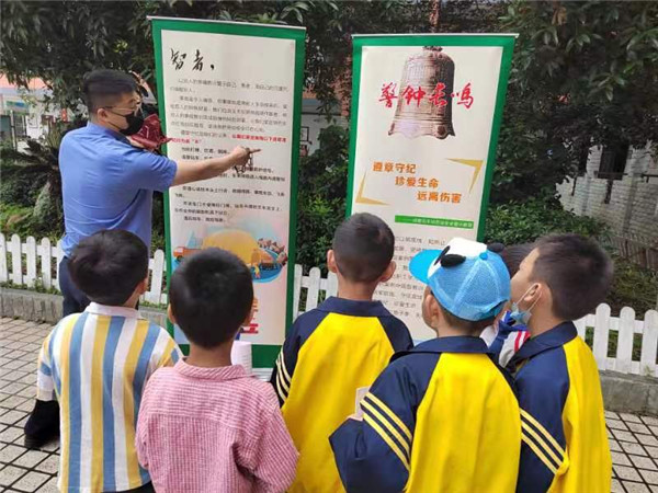 青白江区车站派出所的警官和工作人员从铁路交通事故的引发因素;如何预防铁路交通事故发生等方面与学生开展互动,通过有奖问答活动使孩子进一步了解爱路护路和遵守铁路法规的重要性;针对小学生的心理特点,派出所民警向同学们宣传了铁路安全知识,带领孩子参观了铁路安全知识宣传展板,发放宣传手册100余份,在提升学生兴趣的同时,以通俗易懂的语言向他们普及铁路安全知识;活动让孩子们提高了自我防范意识,实现了“教育一个孩子,带动一个家庭,确保一线平安”的预期目标,增强了“生命至上、爱路护路”的安全意识。(邓林钢)