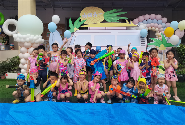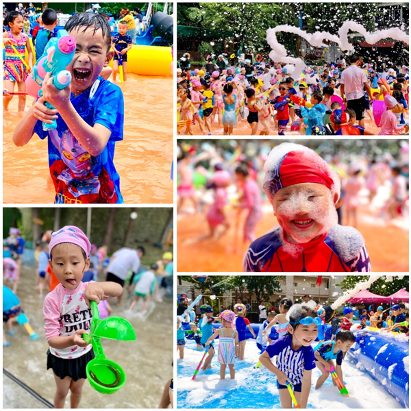 随后,伴随着欢快的音乐旋律,在老师的热情律动和暖场游戏中,六一节玩水活动正式拉开了序幕!