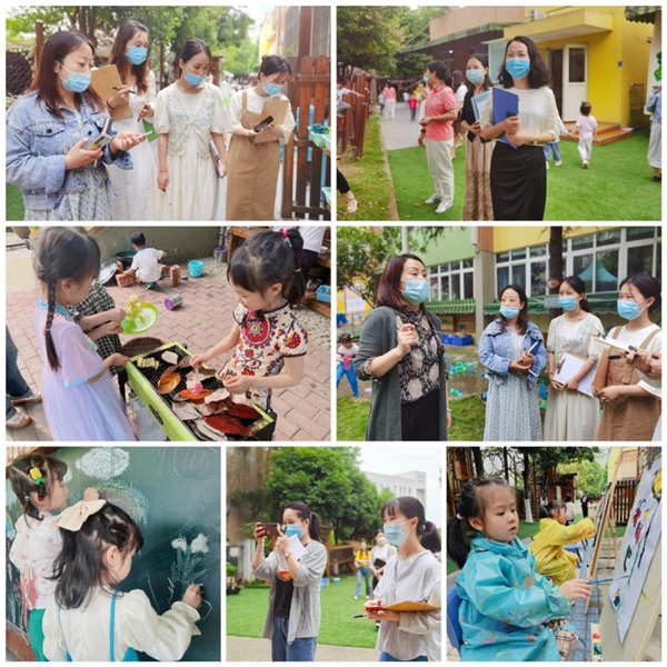户外大畅游活动是惠幼颇具特色的户外混龄游戏,为更好地推进幼儿园户外自主游戏的开展,提升户外自主游戏的质量,集团成员对惠幼的户外大畅游活动进行了观摩。大家对惠幼打造的一体化环境(包括幼儿园绿色生命场、生活体验坊、拓展挑战营三大特色活动场域)与课程的有机统整给予了充分肯定和认可。对游戏中幼儿与环境、材料的有效互动,教师有效支持幼儿游戏活动等给予了高度赞扬;并对教师如何支持幼儿游戏、幼儿与材料的有效互动等方面进行了交流讨论。