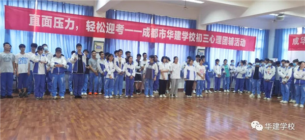 四川新闻网成都6月7日讯 随着中考的临近,初三学生的学习和生活变得紧张,为帮助孩子们缓解压力,圆理想高中梦,顺利跨入人生的分水岭,近日,成都市华建学校精心组织策划了一场减压团辅活动。