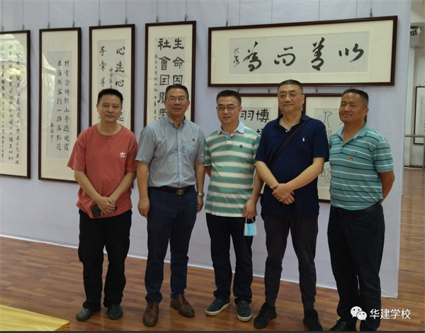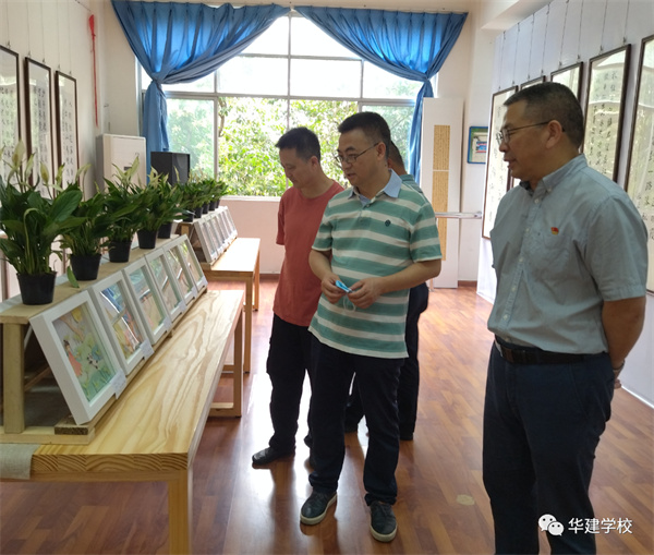 中国教育学会书法教育专委会理事、四川省书法家协会会员、四川省教育学会书法教育专委会副秘书长、成都市教育学会理事、成都市教育学会书法教育专委会常务副会长蔡育坤和成华区文联副主席、成华区美术家协会主席、书法家协会主席邓乃斌等书画领域专家前来观展指导,华建学校校长伍兴潮、书记陈平和副校长王成勋陪同。