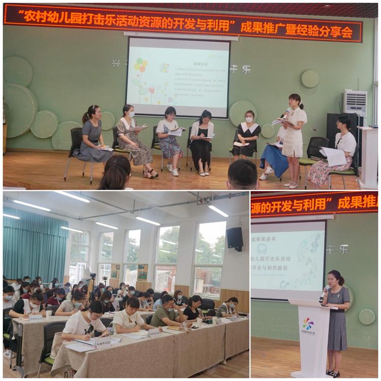 课例展示结束后,寿安镇中心幼儿园教师王谢从指导思想、预期目标、基本思路、课程成果的推广、运用等方面进行了《龙头课题的成果在集团园中的运用与推广》的分享交流。