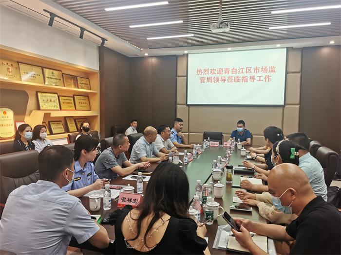 青白江区市场监管局一行实地参观了荷花池大成市场党员示范店、党群服务站、半边街、博物馆、党建阵地,并开展座谈进行了充分的交流。