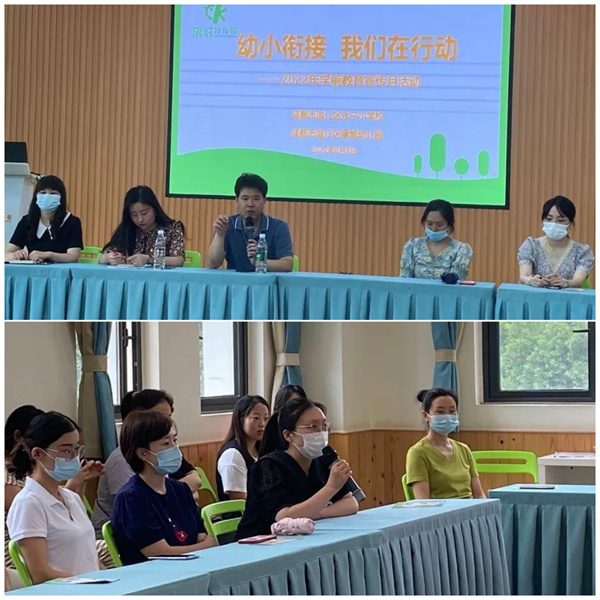 为了让家长更加全面、深入地了解幼小衔接意义及内容,直观了解小学一年级学生的学习和生活,同时有效解决家长在幼小衔接中的问题和困惑,2022年6月8日下午,温江区康城幼儿园特邀温江区永宁小学副校长熊刚、学生发展中心主任季丹及康城幼园级家委会成员、家长代表、康城幼教师,开展了以“幼小衔接,我们在行动”为主题的2022年学前教育宣传月活动,通过幼儿园、家庭、小学三方协同,共话科学幼小衔接,共助孩子快乐成长!
