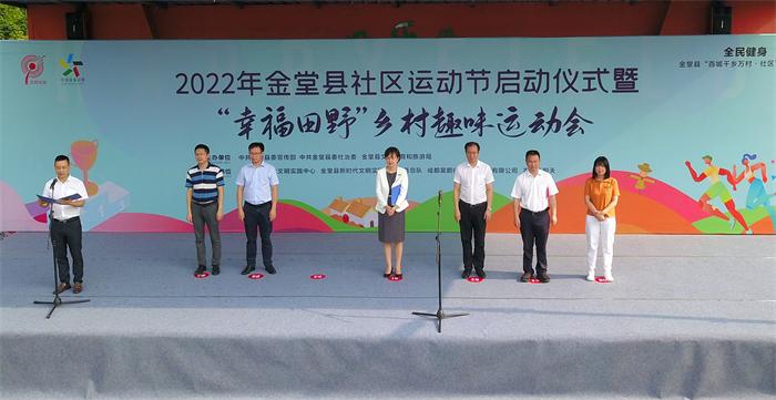 四川新闻网成都6月10日讯 6月10日,2022年成都市金堂县社区运动节启动仪式暨“幸福田野”乡村趣味运动会在金堂县赵镇街道农场乐翻天欢乐开场。本次活动由中共金堂县委宣传部、中共金堂县委城乡社区发展治理委员会、金堂县文化体育和旅游局主办,全县16个镇(街道)的分管负责同志、文化站长及各村(社区)居民代表共200余人参加了活动。