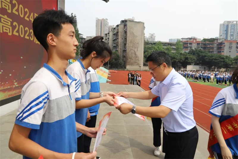 优秀班级代表、高2023届4班班主任罗虹老师表达了获得这份荣誉的喜悦,并与在场师生分享了4班的成长故事。4班是一个团结进取、充满活力的班集体,大家互帮互助,共同进步。希望在即将到来的高三生活中,同学们继续携手并进,以信念为舵,以理想为帆,载着梦想之舟驶向成功彼岸。