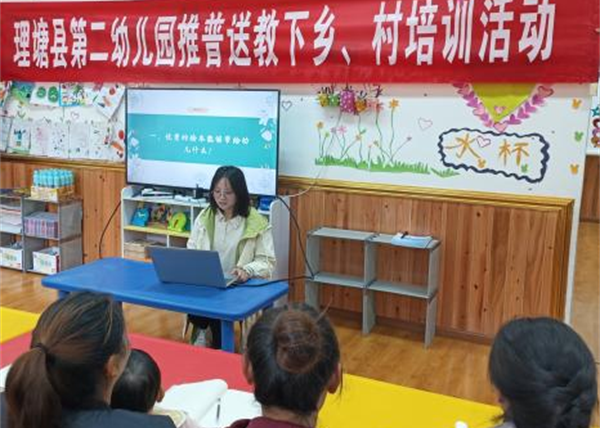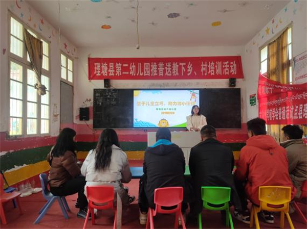 四川新闻网成都6月20日讯 “有一份光,发一份热,不必等待炬火”。这句话是熊仕蓉老师支教道路上的动力来源。为了能够尽自己最大的力量,在有限的支教时间里,发挥支教教师的辐射带动作用,影响到理塘县更多的幼儿教师,为更多的孩子点亮希望的微光,新都区机关幼儿园支教教师、新都区杨雪名师工作室成员熊仕蓉老师积极参与理塘县教育和体育局组织的幼儿园推普送教下乡、村培训活动,主动到比理塘县县城更偏远的君坝乡、呷洼乡、甲洼乡的幼教点开展公开课展示、专题培训活动。