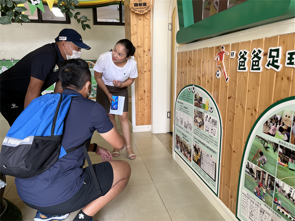 四川新闻网成都6月20日讯 为积极推进校园足球工作建设,夯实足球教育基础根基,2022年6月15日上午,由成都市青少年校园足球工作领导小组成员天野(日本)、李衡组成的调研小组来到新繁幼儿园大丰园区开展调研指导工作。