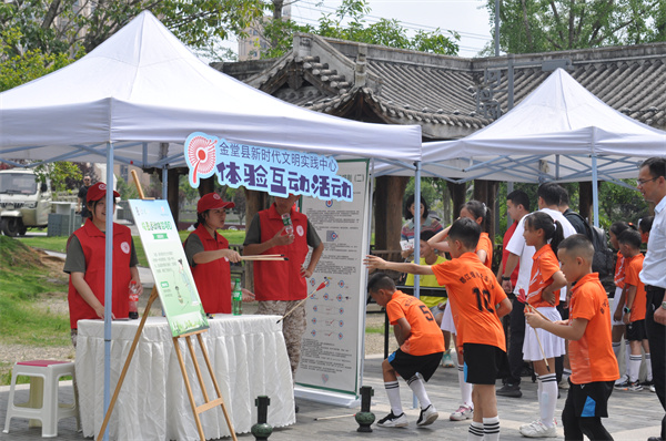体验区的投壶、桌面冰壶等项目吸引广大市民参与,带来极佳的互动体验。宣传区金堂县集中开展省市党代会理论宣传,展示28个文明实践精品项目,展现县“十佳”优秀志愿者风采,现场媒体主播开办了健康营养膳食制作及文明餐桌礼仪直播课程,多方式培育践行社会主义核心价值观,倡树文明新风;都江堰市组织的熊猫志愿者进行熊猫相关科普和文创产品展示吸引不少市民驻足围观;崇州市志愿服务联合会的消防安全、应急救护知识游戏吸引群众积极参与体验。