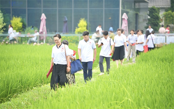 活动中,文艺志愿者们沿着绿道走向绿油油的稻田和美丽的开心农庄,现场感受了一幅幅茂林修竹、美田弥望的优美画卷,实实在在的感受和领略到了高山村通过“校院地企”联动发展模式,推进传统农业向现代农业转型,实现“藏粮于地、藏粮于技”的实践成果。