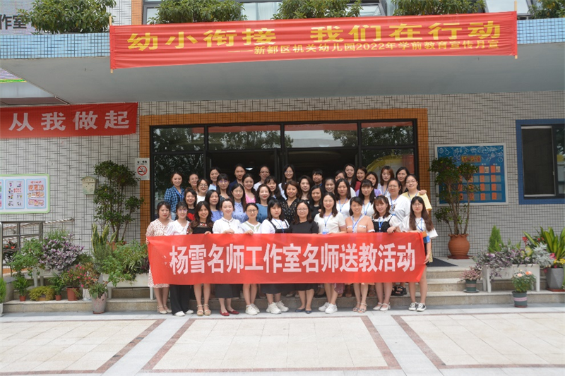 四川新闻网成都6月23日讯 为充分发挥名师工作室的示范交流作用,2022年6月17日,成都市新都区机关幼儿园“杨雪名师工作室”领衔人杨雪老师携工作室成员联动成都市王亚莉名师工作室一行,首次联合教研开展了以“幼小衔接背景下幼儿园促进儿童深度学习的有效实践”为主题的市区两级名师交流活动。