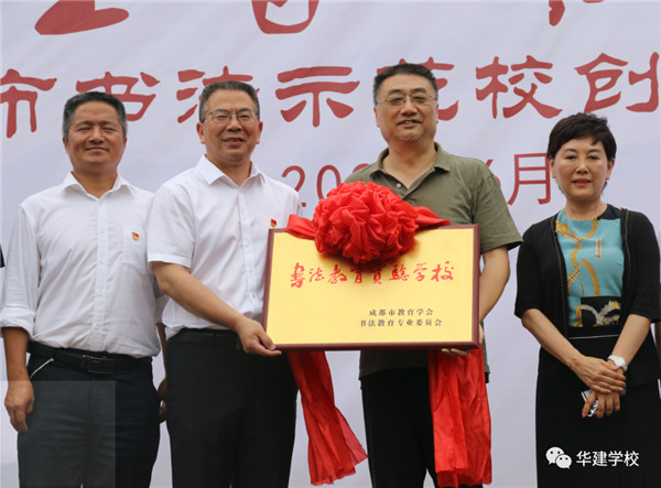 成都市教育学会书法教育专委会常务副会长蔡育坤,成华区美术家协会主席、书法家协会主席邓乃斌,成都市教育学会书法教育专委会副会长兼秘书长罗良建,成都市教育学会书法教育专委会副会长吴学强等书法专家到华建学校进行“书法教育实验学校”的指导和验收工作。学校全体师生,家长代表,区教育科学研究院书记曹秦蓉,区教育局人事科长叶常承,德育科长曹建全,区政府督学宋良智,辖区街道办事处、派出所、社区领导及十余所兄弟学校校长们一起见证了华建学校的这一高光时刻。