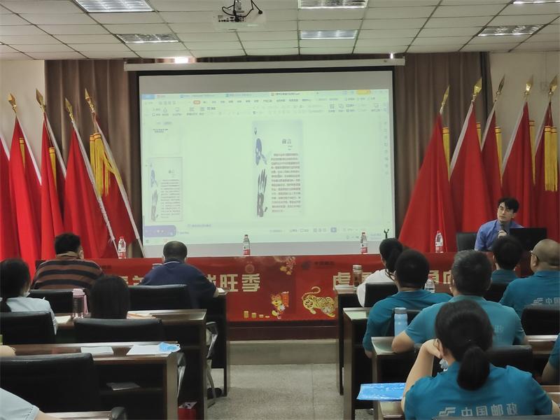 四川新闻网成都6月24日讯 为进一步强化青羊区寄递从业人员的防毒、识毒能力,增强寄递从业人员积极性、主动性。6月23日下午,青羊区检察院检察官来到青羊邮政分公司给该公司各网点负责人开展“绿色无毒 优质寄递”的培训讲座。青羊邮政分公司各网点30余人参与了此次活动。