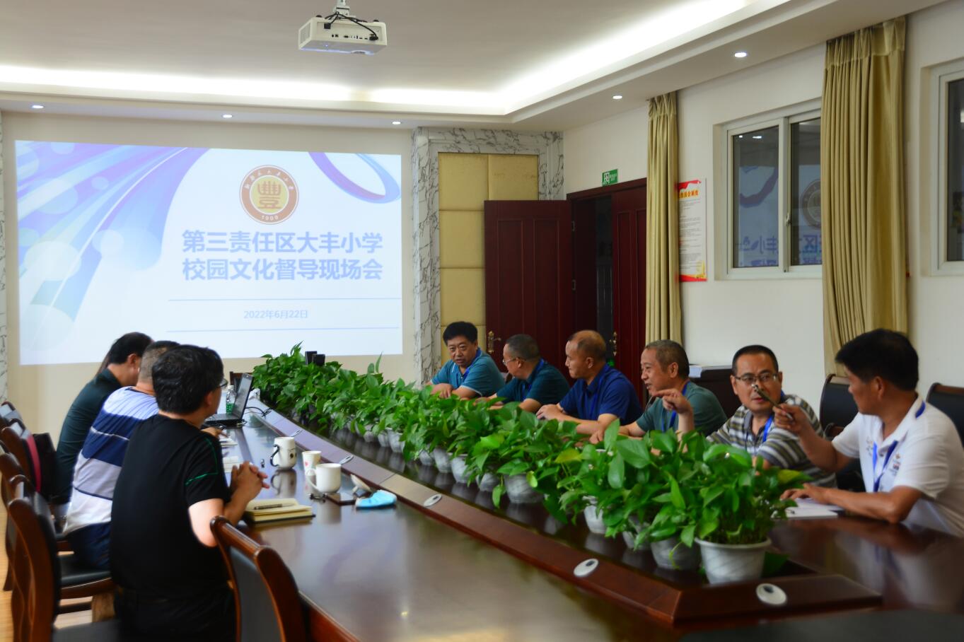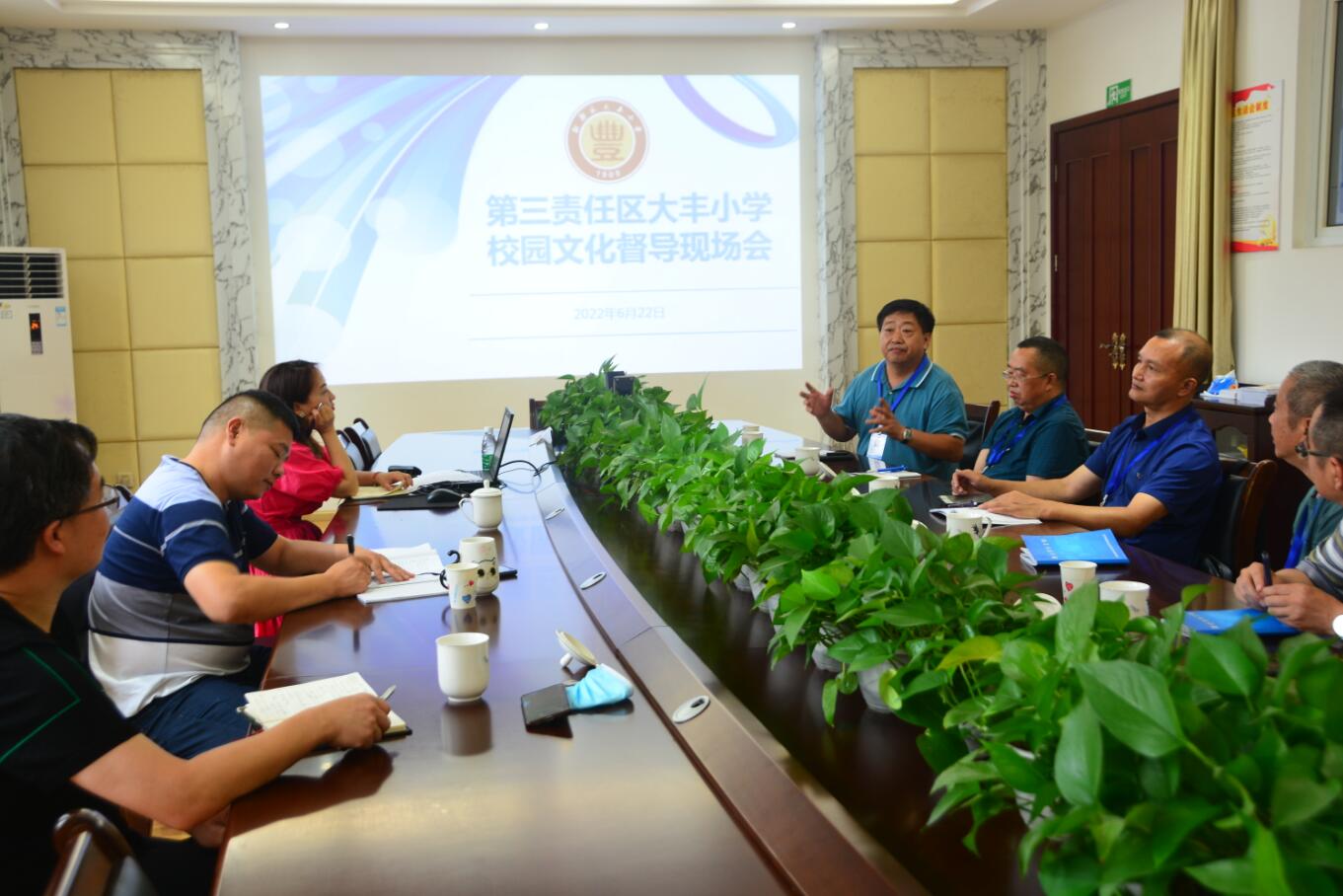 督导组首先听取了廖直飞对校园文化建设工作的汇报。随后,督导组通过现场查看、座谈访问等方式对大丰小学校园文化建设工作进行了详细、全面的检查。督导组对学校校园文化建设所取得的成绩给予了充分的肯定,并提出了指导性的意见。