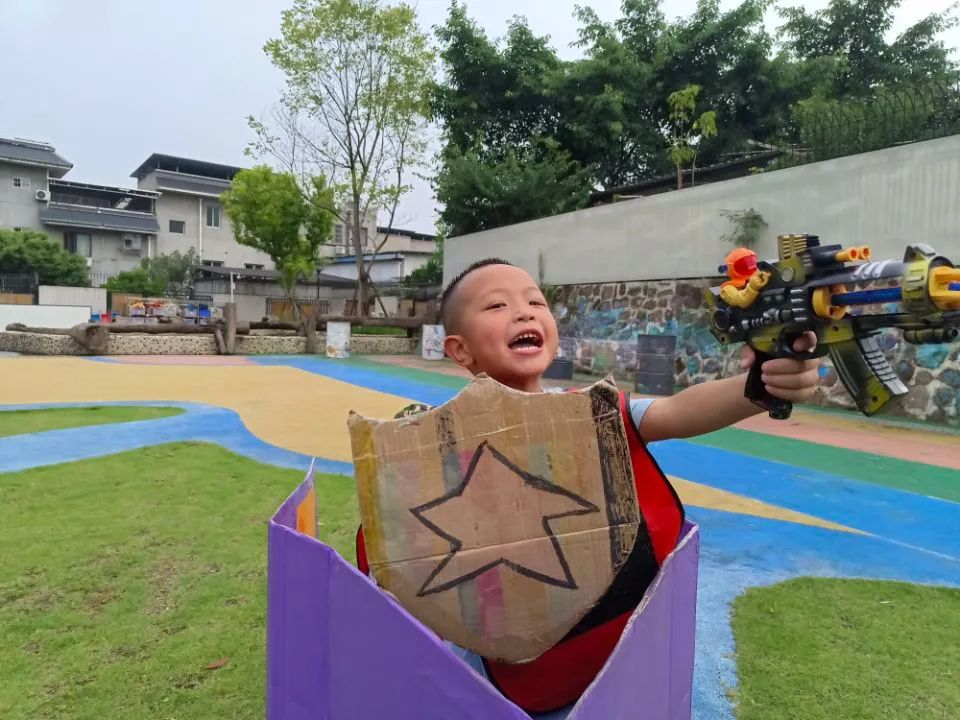 一次惊喜的活动、一场精密的部署、一股誓死保卫的气势,这无一不向大家展示着属于中国少年郎的气派。“少年强则国强”,虽然这只是一次小小的游戏活动,但在活动中小朋友们表现出来的不让“敌人”一分一毫、“誓死保卫”阵地的决心也不禁让人动容。