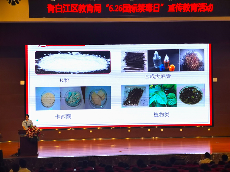 6月24日,成都市第二强制隔离戒毒所为川化中学的学生代表开展了以“健康人生,绿色无毒”为主题的禁毒宣传教育讲座。由于青少年社会经验少,辨别是非能力相对较弱,禁毒民警从毒品概念及种类、毒品的危害、如何预防毒品、禁毒法律法规等方面入手,全面生动地为同学们讲解了毒品预防相关知识,引导学生了解禁毒的必要性,教育引导青少年从小树立“健康人生,绿色无毒”的生活理念。通过禁毒知识竞赛,进一步引导学生远离治安复杂场所,谨慎交友,勇敢对毒品说“不”,同时要为“无毒校园”建设贡献力量。