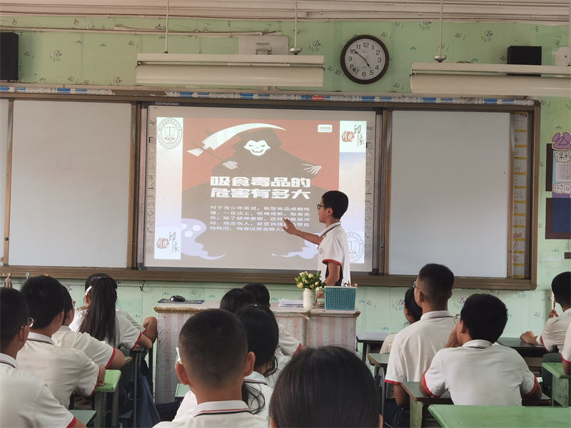 通过禁毒系列活动的开展,让学生人人懂得毒品的危害,时刻提醒学生要热爱生活,珍惜生命;要遵纪守法,抵制诱惑,远离毒品,做一名合格中小学生。在校园内营造了良好的禁毒宣传氛围,有效地推进了禁毒工作的顺利开展,为维护学校教育、教学和学校稳定起到了积极的作用。(邓林钢)