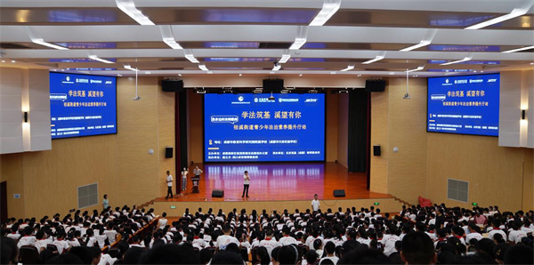 四川新闻网成都6月28日讯 进一步强化广大青少年尊法学法守法用法的意识,保护青少年合法权益,6月28日上午,成都高新区桂溪街道在成都市教育科学研究院附属学校(成都市天府实验学校)开展青少年学法筑基法治素养提升行动,全校七百余名初一学生参加了此次活动。