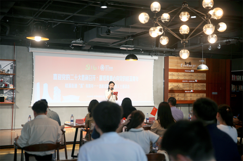 会上,桂溪街道党工委委员、组织委员、人大工委副主任张云生上台致辞,总结街道过去统一战线与青年工作的成果,明晰当代新青年的责任与担当,表达了对辖区各阶层青年团结在党组织周围,奋进新征程,建功新时代的期望。随后,为今年新共建“青年之家”进行了授牌,明晰“青年之家”阵地推动青年社交从线上到线下转变,增强青年归属感的阵地功能。在文件学习环节,桂溪街道党群办副主任、团工委书记伍辰向青年传达各级重要讲话精神,带领各阶层青年集中学习并讨论《新时代全面从严治团实施纲要》《中国共产主义青年团纪律处分条例(试行)》等重要文件,强化青年使命感、责任感。座谈会还邀请了十大“溪”有青年代表,分享了自己的追梦奋斗历程,展现当代青年热爱祖国,用自身的力量激励更多的青年群体在各方面为城市建设作出贡献的风貌。最后,青年们欢畅互动,畅享桂溪青年在桂溪的生活、工作节奏和样貌,增强青年群体的获得感、幸福感。