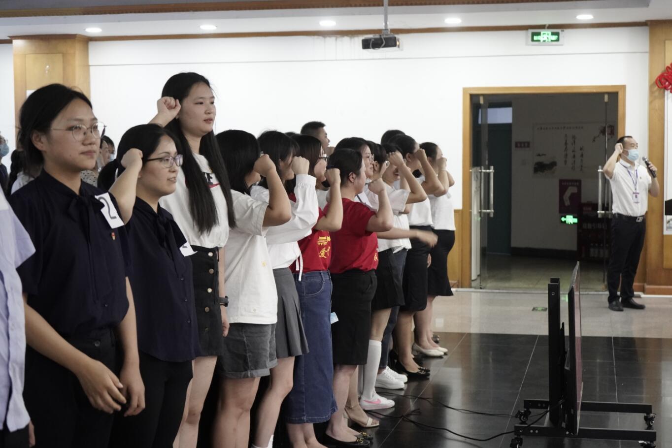 比赛前党委书记鲁诗勇同志带领全体党员重温入党誓词。