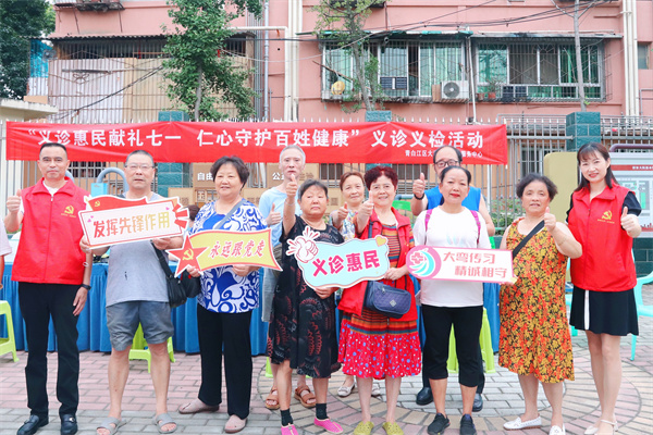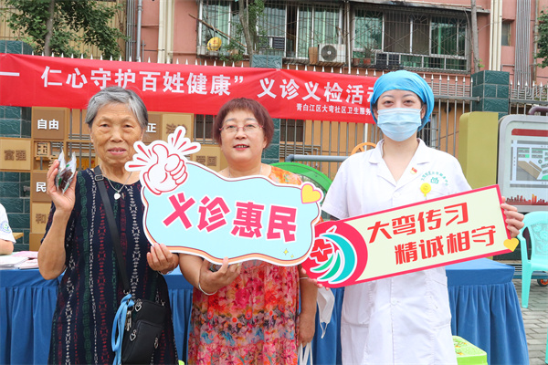 四川新闻网成都7月4日讯 为庆祝中国共产党成立101周年,7月1日,青白江区大弯社区卫生服务中心党支部组织各科室业务骨干、党员志愿者走进化工路社区开展“义诊惠民献礼七一仁心守护百姓健康”义诊义检活动,区人民医院消化内科主治医师谢智、区妇保院口腔科主治医师袁晓君受邀参加此次活动。
