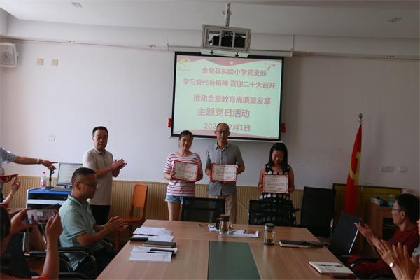 接着,支部委员黄兴才宣读了《中共金堂县实验小学支部关于表彰2022年“扬长先锋”的决定》,16名党员收到表彰。支部委员黄俊总结了党员义工活动一年来的开展情况,并对下一年的党员义工活动提出了要求。