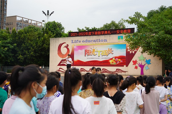 散学典礼从庄严的国歌声中开始,之后全校师生齐唱校歌。在热烈的掌声中,学校校长对本学期的各项工作进行了小结,肯定了全体师生的辛勤劳动和所取得的优秀成绩,同时进行了“喜迎党的二十大·争做好队员”的教育讲话。随后学校还做了暑假安全教育,从交通安全、防火、防骗、防溺水、饮食卫生、预防疾病、居家生活等各个方面要求大家一定要紧记安全,度过一个安全、愉快、有意义的假期。