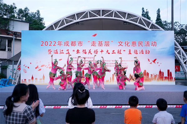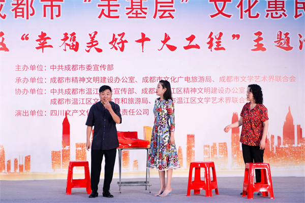 此次“走基层”惠民活动在天府辖区内进行了“幸福美好十大工程”“简约生活·绿色低碳”主题巡演,今年的走基层演出中,继续延续了大量的新创节目,以接地气、贴近群众、贴近生活的文化表演给人民群众带来欢乐,不仅丰富了群众的文化生活,也唱响了时代主旋律,传递了正能量。(陈凡坪)