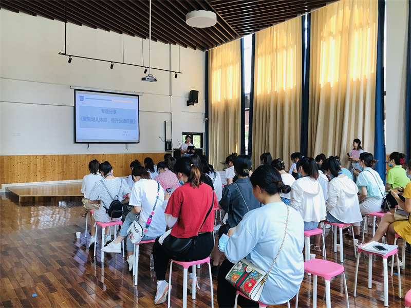 四川新闻网成都7月5日讯 早操对儿童的动作发展、体能发展、良好品质养成起着重要作用。为进一步提升幼儿园教师对早操编排的能力,实现早操锻炼性与游戏性兼具的目的,2022年6月29日上午,新都区学前教育教研联组(健康组)2022年第2次活动在新繁幼儿园大丰分园举行。新都区教科院学前教研员张楠、新都区学前教育教研联组(健康组)全体成员、香锐香宝宝大丰赵家幼儿园的教师参加了此次活动。