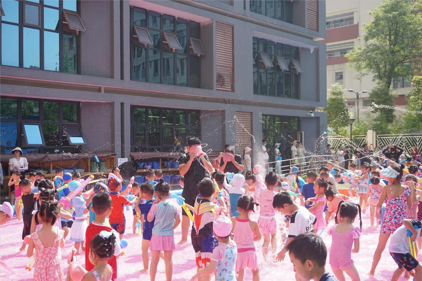 毕业典礼恰逢幼儿园一年一度的水花节,放松身体与阳光和水花来一场亲密接触岂不乐哉!瞧,小、中、大班的孩子们纷纷穿上泳装,拿着水枪开启了期待已经的玩水模式。飞溅的水花,像美妙的音符,共谱一场欢乐的水仗。孩子们笑着、闹着、尽情狂欢,现场的气氛如这夏日的温度一样持续高升!快乐的心情溢于言表!