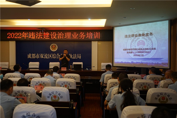 四川新闻网成都7月8日讯 7月6日,双流区综合行政执法局开展2022年违法建设治理业务培训,邀请成都市城管执法总队五支队二级高级主办袁培康、四川均鼎律师事务所律师胡圣刚进行违法建设治理工作作专题培训。规划中队、治违办、各镇(街道)执法中队40余名从事违法建设治理工作的一线执法人员参与培训。