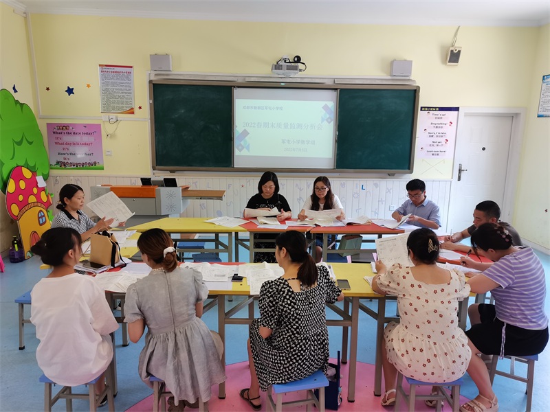 四川新闻网成都7月11日讯 夏日炎炎,研析增华。为进一步增强教师的质量意识,提高教师的教育教学水平,促进教师间的交流与合作,7月5日下午,军屯小学校教导处组织全体教师分学科召开期末监测质量分析研讨会。会上,各教研组通过“亮出优点、查摆问题、改进教学”对本学期各个学科学生的监测成绩、平时表现以及教师的教学常规进行分析和总结。