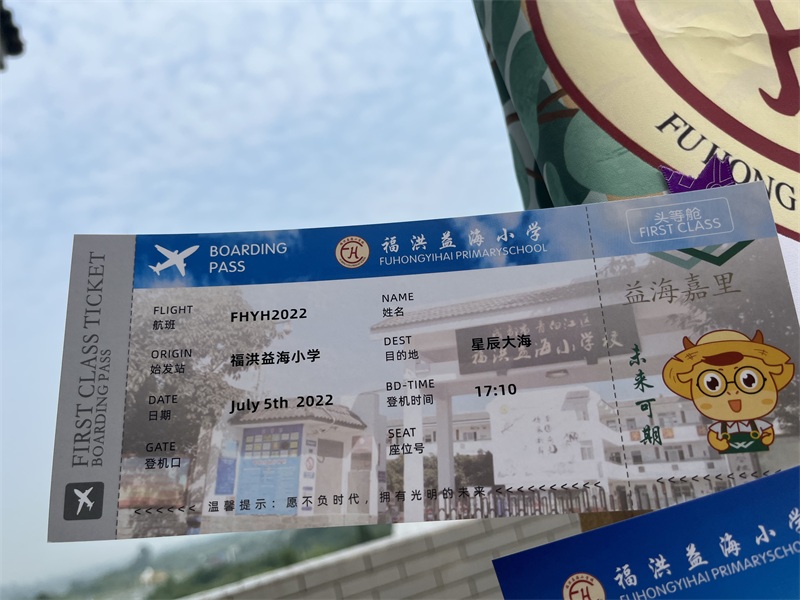 益海嘉里的义工朋友们为毕业生送上蛋糕祝贺同学们顺利毕业,并送上一张通往未来的机票,愿每一位福小毕业的学子能够在未来的旅途上飞得更高更远。