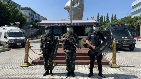 黑色的制服,吸取了额外的热量;沉重的装备,耗费了额外的体力。守护平安,不仅需要用脚步丈量城市,更需要强壮的体魄。汗水一如既往的流下,浇灭了炙热的空气,却无法熄灭坚守平安的初心。