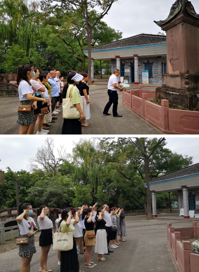 之后,我们来到抗日阵亡将士纪念碑,在这里庄严肃立,缅怀革命先烈,致敬抗战英雄,向英雄献花,在纪念碑前重温入党誓词。随后还参观了邓公楼、秀川书院、金堂县立中学校旧址等点位。