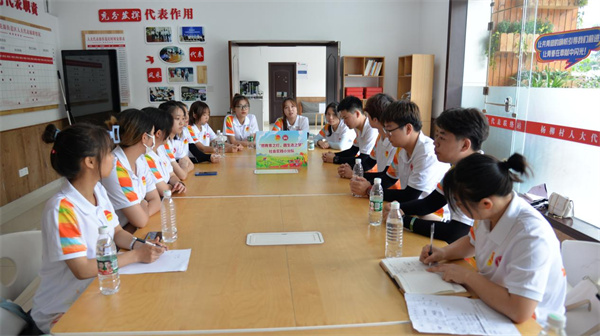 上午11点半小分队回到杨柳村办公室进行座谈,每个小分队纷纷发言,谈感受,谈心得。最后国际商贸学院“燃教育之灯,圆生态之梦”团队暑期三下乡社会实践呼吁,请大家给家人多一分陪伴多一分关爱,如果有能力,也多给社会上的孤独老人多一分关爱。