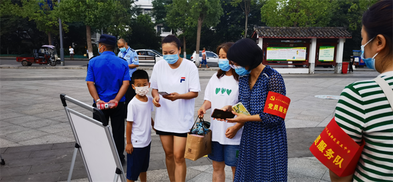20日早上6:40,19名党员在学校集结,分批奔赴籍田街道回江社区滨河路、蔡堰社区息壤广场和铧炉村检测点。各点位上,五中党员教师维护秩序、提醒佩戴口罩、帮助测温、协助扫码,各项工作有条不紊地进行。10:00,学校党委书记何永强驱车又到清华村、红阳村督查两个点位的服务情况。