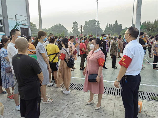 四川新闻网成都8月1日讯 7月30日,成都市青白江区分批开展全员核酸检测。青白江中学校党支部迅速响应,发动党员及普通教师25人,组成4个志愿服务队,到城厢镇龙潭社区、弥牟镇三星社区4个核酸检测点进行志愿服务。
